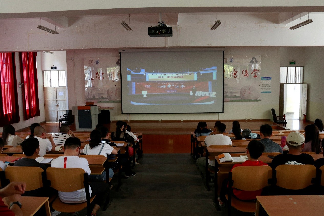4月24日下午,我校组织师生在博雅楼215观看学习第一场“同上党史思政大课”直播视频。