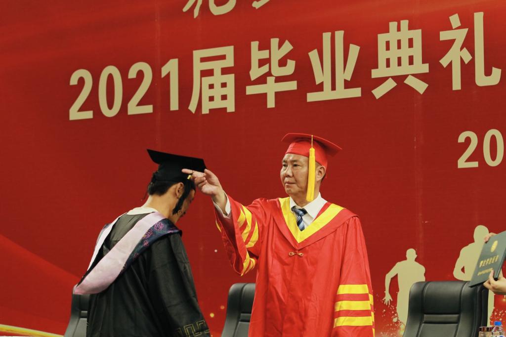 毕业典礼上,党委副书记李国钰宣读《关于表彰2020——2021学年三好学生 优秀学生干部 优秀毕业生 先进班集体的决定》,党委委员、副校长董大校主持毕业典礼并宣读学士学位授予决定,毕业生和教师代表先后发言。党委委员、副校长黄城书,党委委员、纪委书记刘德仕,党委委员、校务处处长赵卫华,党委委员、党群工作处处长施勇出席典礼。