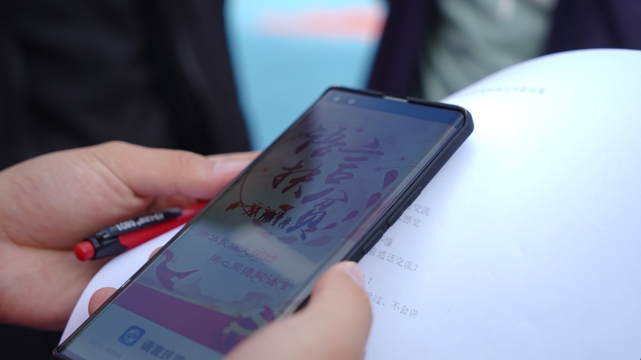 活动中,同学们以形式多样、群众喜闻乐见的方式开展推普活动,一边强调说好普通话的重要性,一边向群众发放当地普通话使用情况进行了问卷调查。