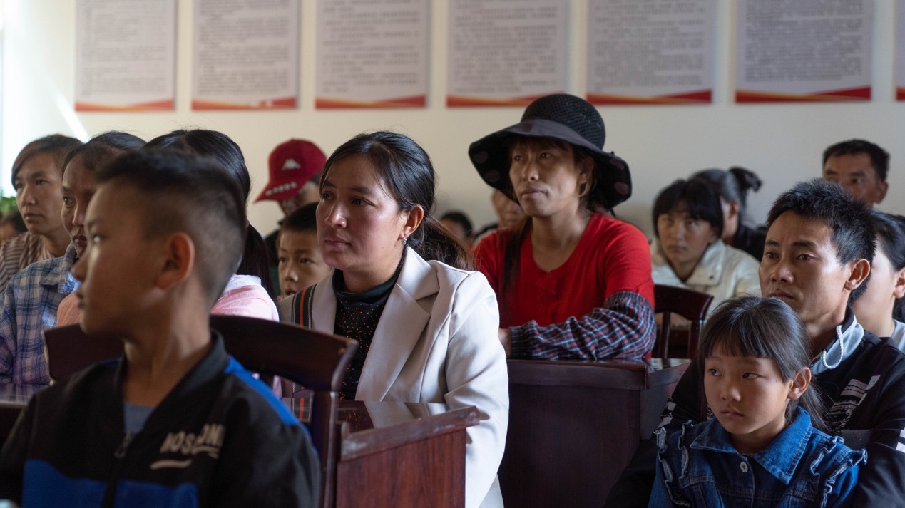 图为炭山村村民认真听讲
