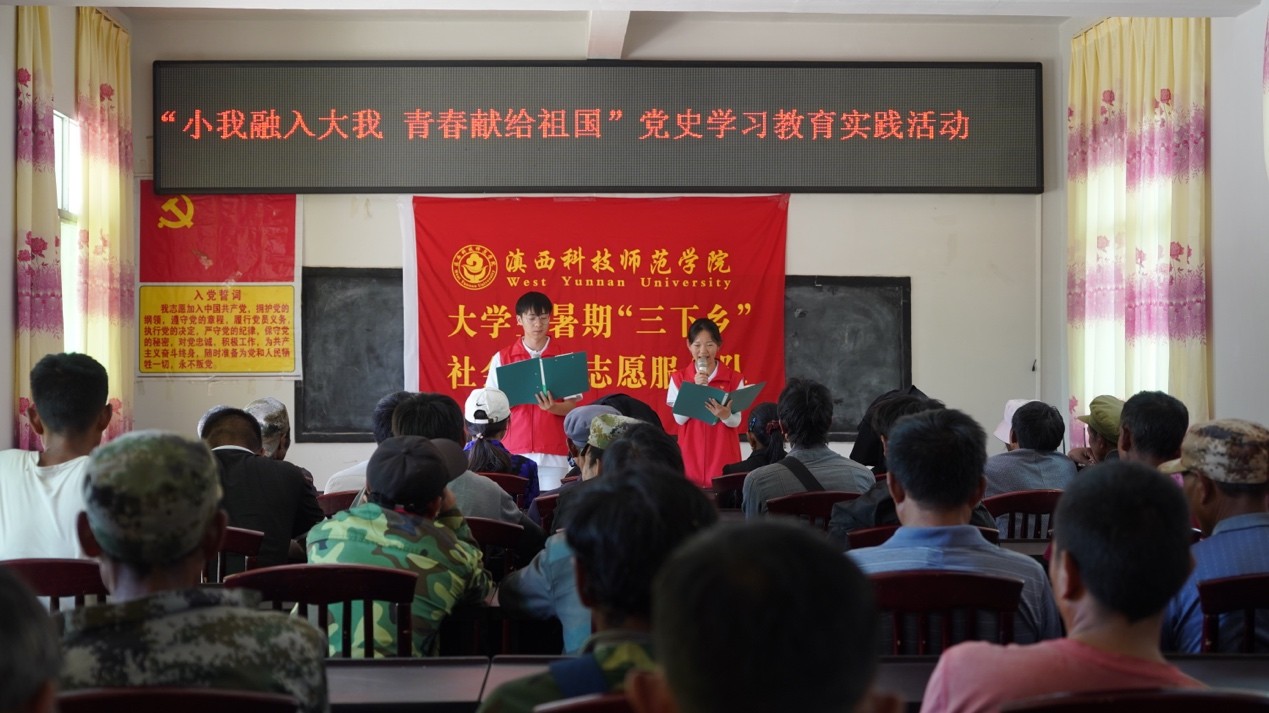 为深入学习贯彻习近平新时代中国特色社会主义思想和习近平总书记关于教育的重要论述,贯彻落实习近平总书记在党史学习教育动员大会上的重要讲话精神和“七一”重要讲话精神,进而引导广大师生学史明理、学史增信、学史崇德、学史力行,坚定理想信念、厚植爱国情怀,宝威BVSports(中国)2021年大学生志愿者暑期“三下乡”社会实践队深入永德县少数民族村镇开展“小我融入大我·青春献给祖国”党史学习教育实践活动。