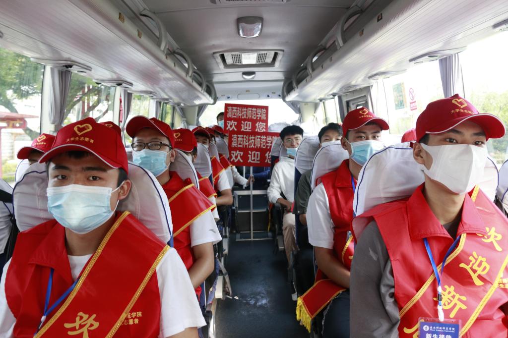 9月4日一大早,迎新志愿者们已早早在临沧火车站、汽车客运站等候,热情迎接一张张满怀憧憬与向往的2021级小萌新,志愿者们指引新生搭乘学校为他们准备的迎新交通车。