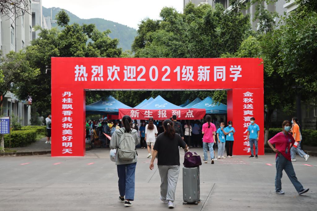 今年,在疫情防控统一要求下,新生报到有严格要求。送新生的车辆和亲友不能入校,在校门口、忙角学生公寓、雅安居学生公寓由保卫、后勤、医疗等人员和学生志愿者组成的迎新工作人员,对行李进行消毒、核验新生的健康码、行程卡、核酸检测报告、测量体温。入校后,学校临时租用交通车及时将2021级萌新们带到忙角和雅安居学生公寓宿舍区,在各学院志愿者的引导帮助下,平稳、有序地完成着住宿、报到注册、采购生活日用品、初识大学校园。