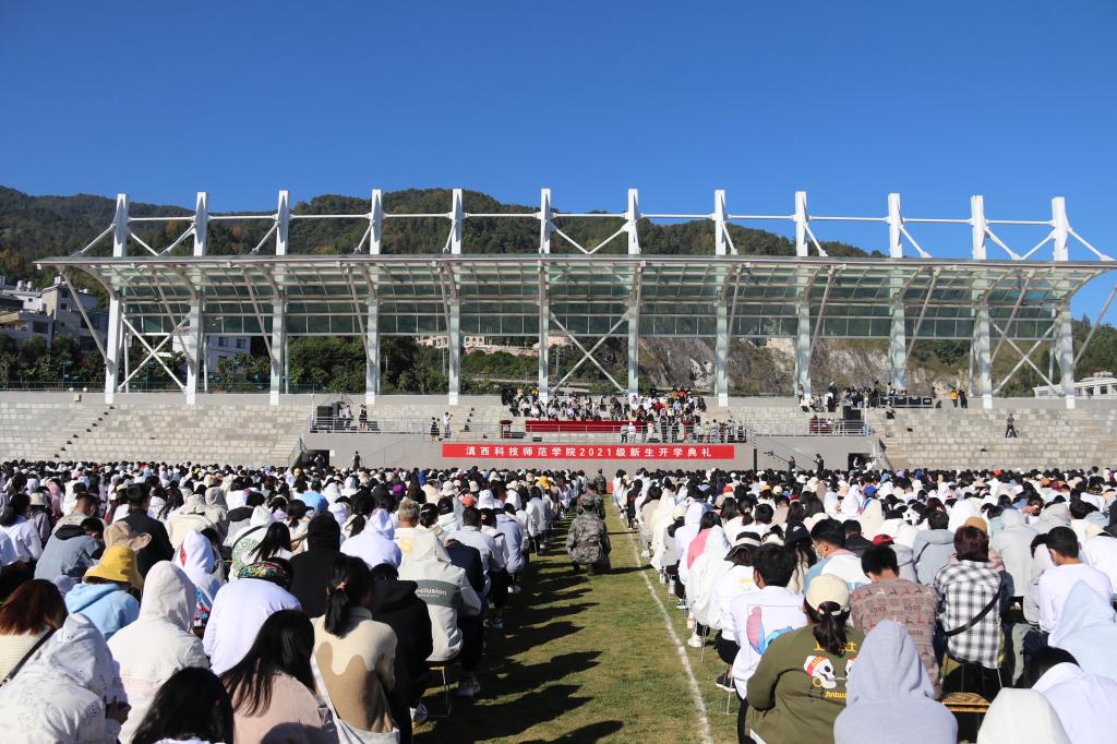 校党委班子成员张中义、段佳美、黄城书、赵卫华、施勇出席开学典礼,各部门(单位)负责人、二级学院党政负责人,全体银龄教师、辅导员、新生班主任和教师代表以及4600余名2021级新生参加了开学典礼。