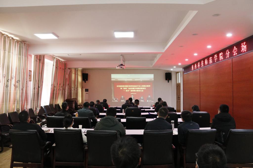 校领导张中义、董大校、李国钰、段佳美、黄城书、刘德仕,校务处、党群工作处、保障管理处班子成员,纪检处全体干部,教务处负责人在分会场参加了视频会议。