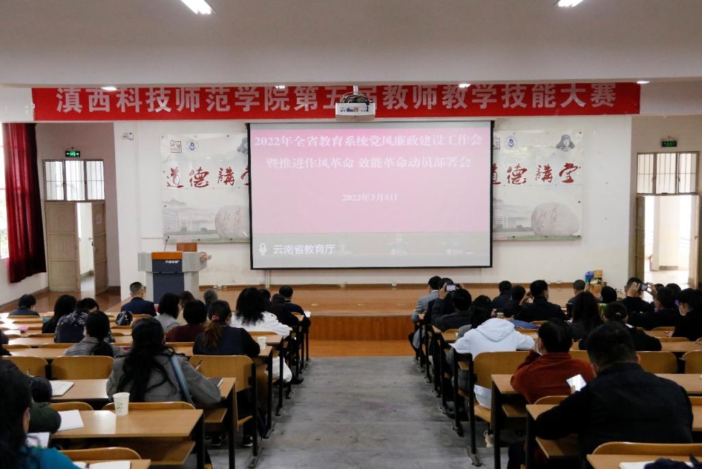 3月8日上午,2022年全省教育系统党风廉政建设工作会暨推进作风革命效能革命动员部署会在昆明召开。省教育厅厅长、党组书记,省委教育工委副书记王云霏,省纪委省监委派驻省教育厅纪检监察组组长金涛出席会议并讲话。省纪委省监委第一监督检查室主任姚刚应邀到会指导,省委教育工委副书记陈世波主持会议。学校设立分会场,学校党委领导班子成员、副处级及以上领导干部和纪检处全体干部参会。