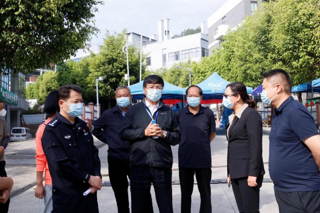 在忙角学生宿舍区和校内核酸检测点,王美荣重点检查了学生返校报到和核酸检测场地布置情况,亲切慰问参与学生返校、疫情防控工作一线人员。