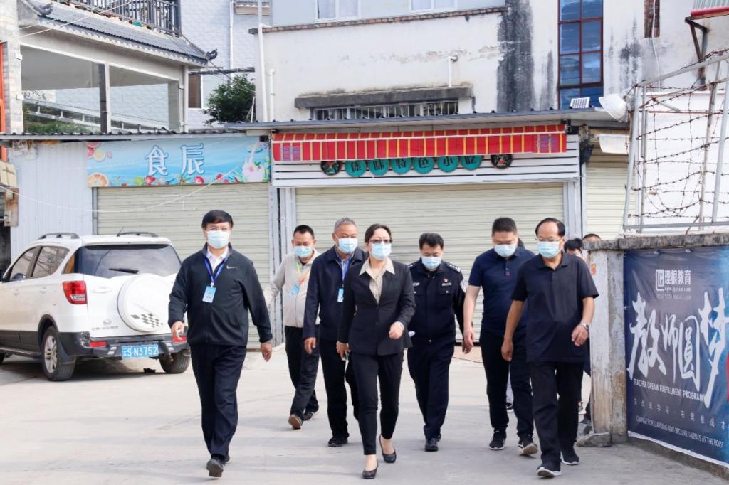 4月23日,临沧市人民政府党组成员、副市长王美荣在宝威BVSports(中国)党委书记张中义、校长董大校陪同下到学生返校报到点、校内核酸检测点、忙角学生宿舍区等场所检查指导学生返校和疫情防控工作。
