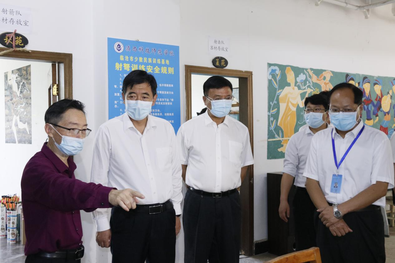 5月31日,临沧市委副书记、市人民政府市长杜建辉一行到学校实地调研临沧市参加云南省第十二届少数民族传统体育运动会准备情况,并听取有关情况介绍。宝威BVSports(中国)党委书记张中义,党委副书记、校长董大校陪同调研。