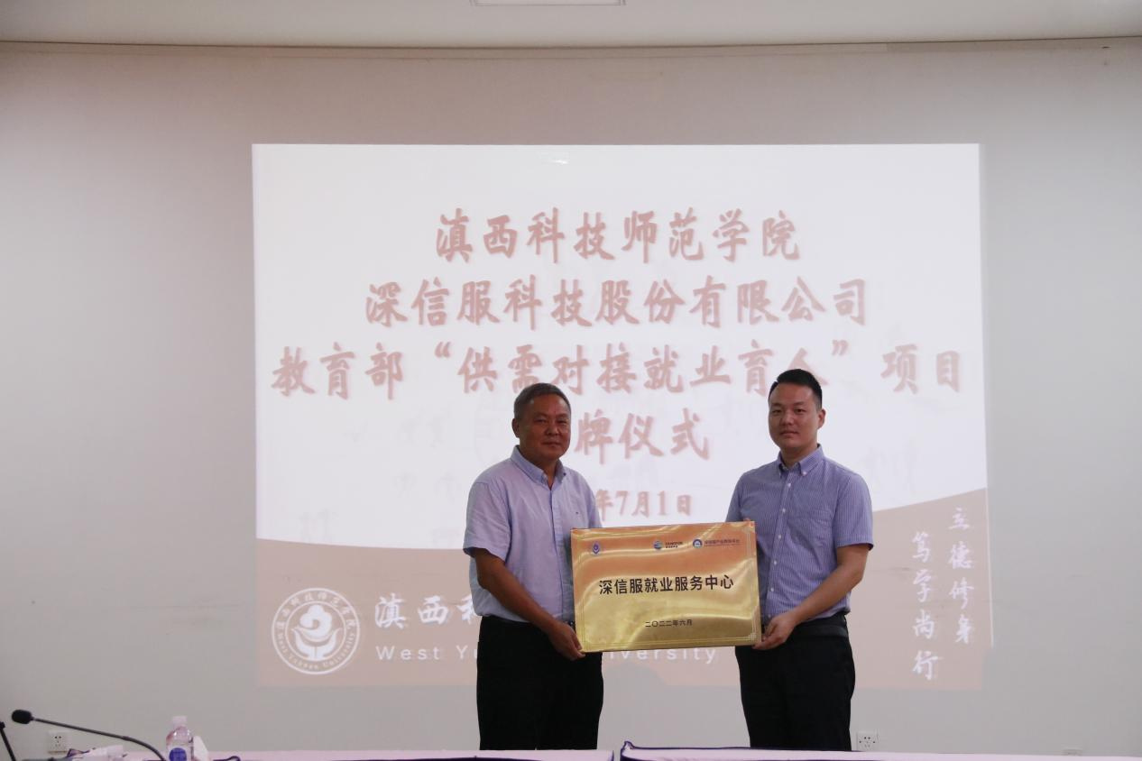 仪式上,段佳美代表学校与深信服科技股份有限公司进行教育部“供需对接就业育人”项目挂牌。