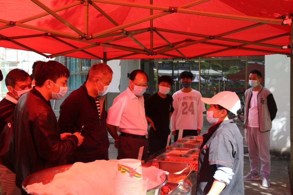 董大校走访了校本部、忙角宿舍区、雅安居小区,对闭环管理的各个区域出入口、核酸检测点、供餐点及学生宿舍进行实地检查。深入了解了闭环管理期间各区域的人员进出管理、核酸检测及学生居住环境、用餐、用水、用电、网络等保障措施的具体落实情况,并对从严从实抓好学校疫情防控和校园安全工作提出了具体要求。
