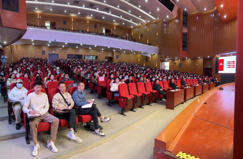 副校长张雁梅,党委班子成员赵卫华、施勇,全校教职员工和部分学生代表参加培训会。