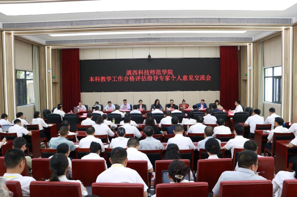 校领导李国钰、施勇、刘德仕、梅英,省教育厅本科教学工作合格评估专家组副组长、云南民族大学副校长邹永松和专家组成员,学校职能部门主要负责人,二级学院主要负责人,联络员,教师代表参加会议。