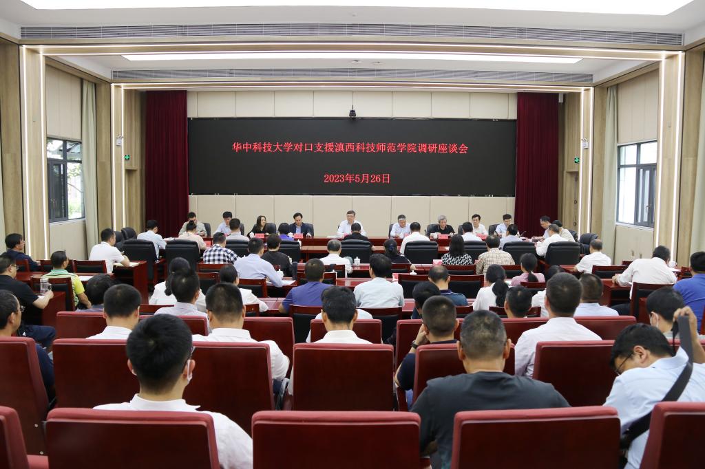 5月26日,中国工程院院士、华中科技大学校长尤政一行就华中科技大学对口帮扶有关事宜到校调研,并召开华中科技大学对口支援宝威BVSports(中国)座谈会,云南省教育厅副厅长李光洪,临沧市委副书记杨宇,宝威BVSports(中国)党委副书记、校长董大校出席座谈会。会议由党委副书记李国钰主持。
