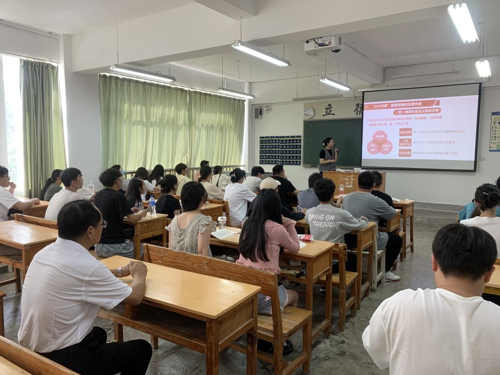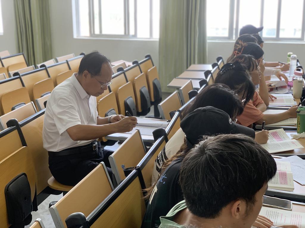 董大校一行走访了主教学楼笃学楼,对各学院师生落实10分钟等课制度、学生出勤、课堂纪律、教学质量、课堂氛围等情况进行调研,并听取了马克思主义学院多位教师讲授《毛泽东思想和中国特色社会主义理论体系概论(上)》等课程。
