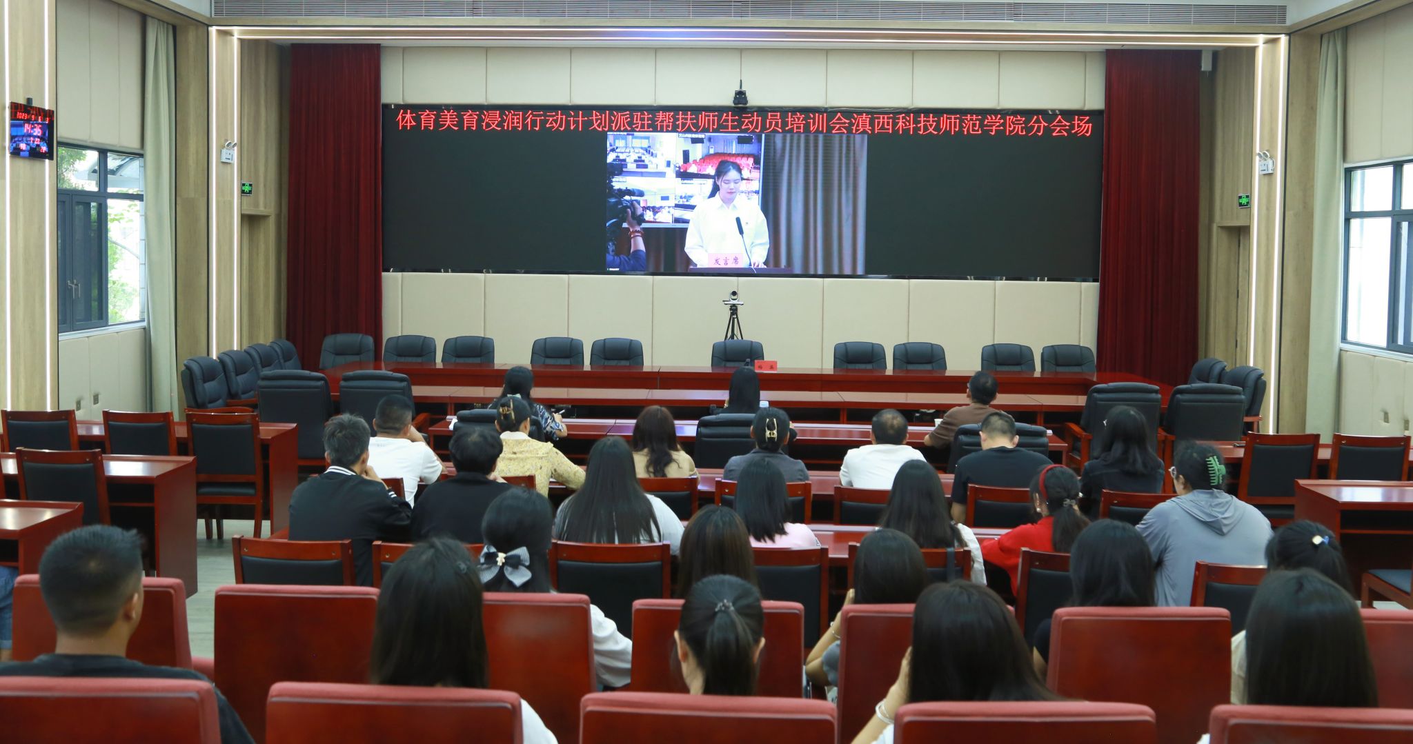 9月6日,省教育厅召开怒江州、迪庆州和边境县(市)学校体育美育浸润行动计划2023年秋季学期派驻帮扶师生动员培训会。省教育厅党组成员、副厅长赵德荣出席会议并讲话。1326名派驻帮扶师生通过线上、线下相结合的方式参会并接受培训。会议以视频形式召开,学校设分会场,副校长梅英出席会议。