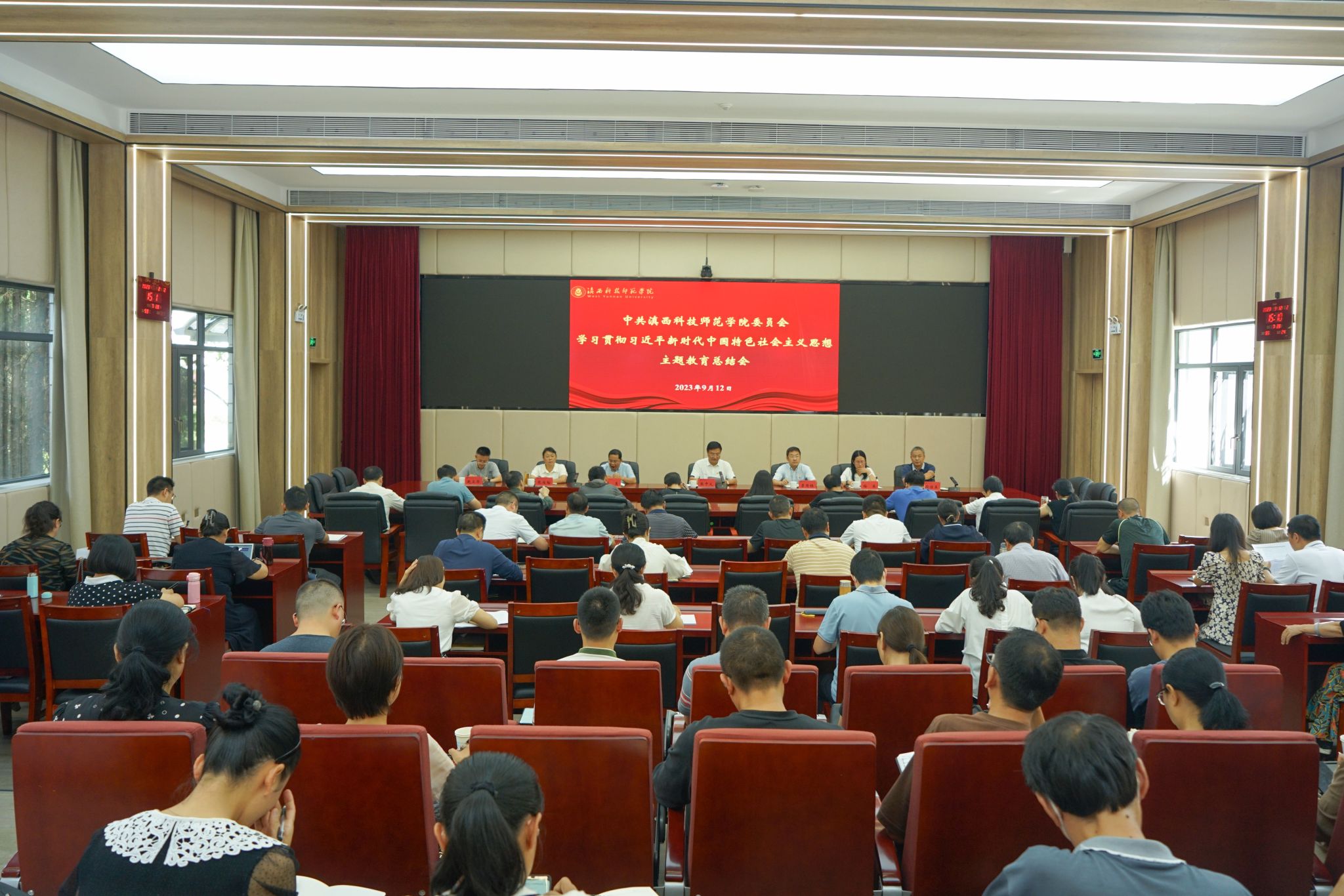 校党委班子成员李国钰、施勇、梅英、赵卫华,校领导张雁梅,保留副厅长级待遇干部段佳美出席会议,全体处级领导干部,校党委主题教育领导小组办公室全体成员参加会议。