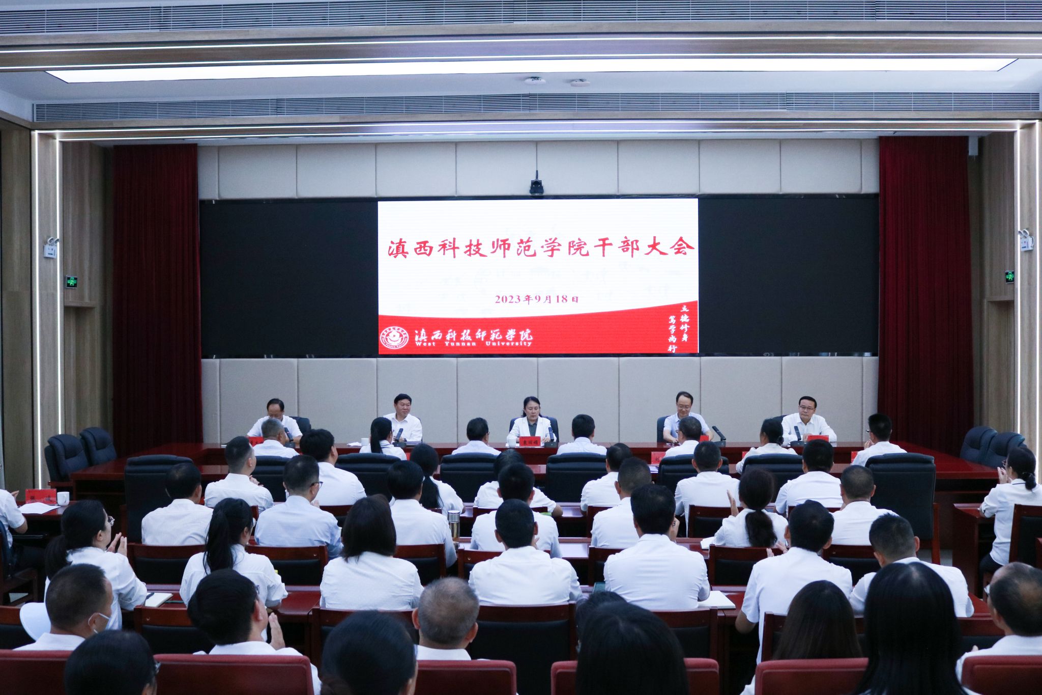 省委组织部副部长袁丽娟,省委教育工委委员、省教育厅党组成员杨春城,临沧市委常委、市委组织部部长徐以民出席会议并讲话。会议由学校党委副书记、校长董大校主持。