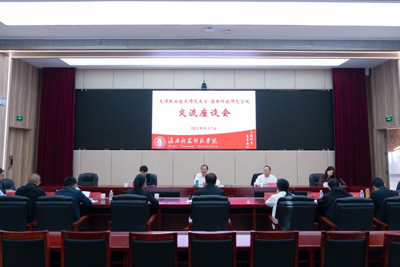11月2日,天津职业技术师范大学党委书记张金刚一行到校调研交流。校党委副书记、校长董大校陪同调研,校党委委员、副校长梅英主持座谈会。