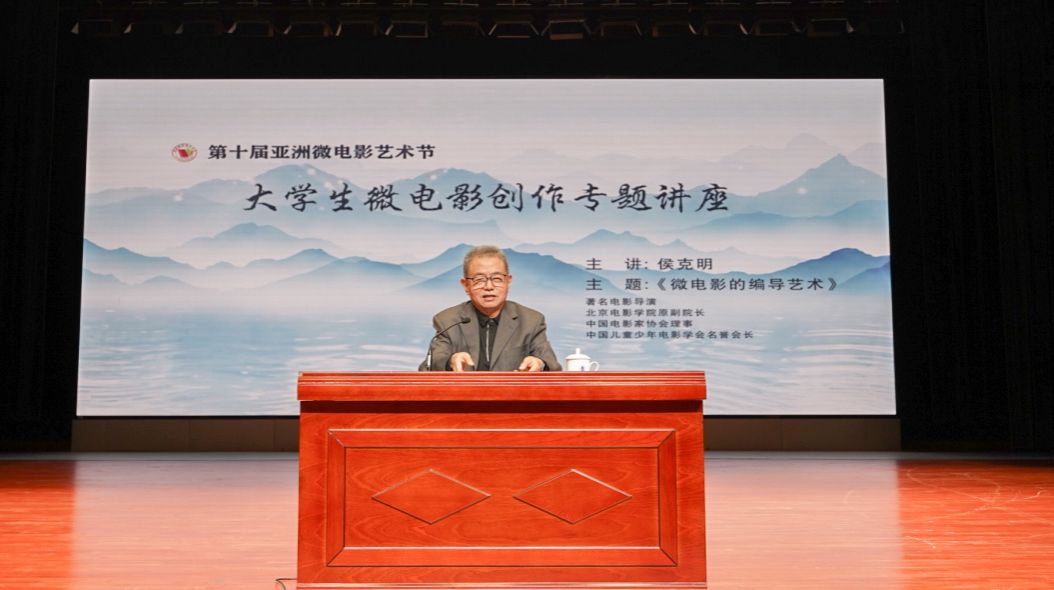 11月25日,北京电影学院原副院长、导演系教授、博士生导师侯克明为学校师生讲授《微电影的编导艺术》专题讲座。