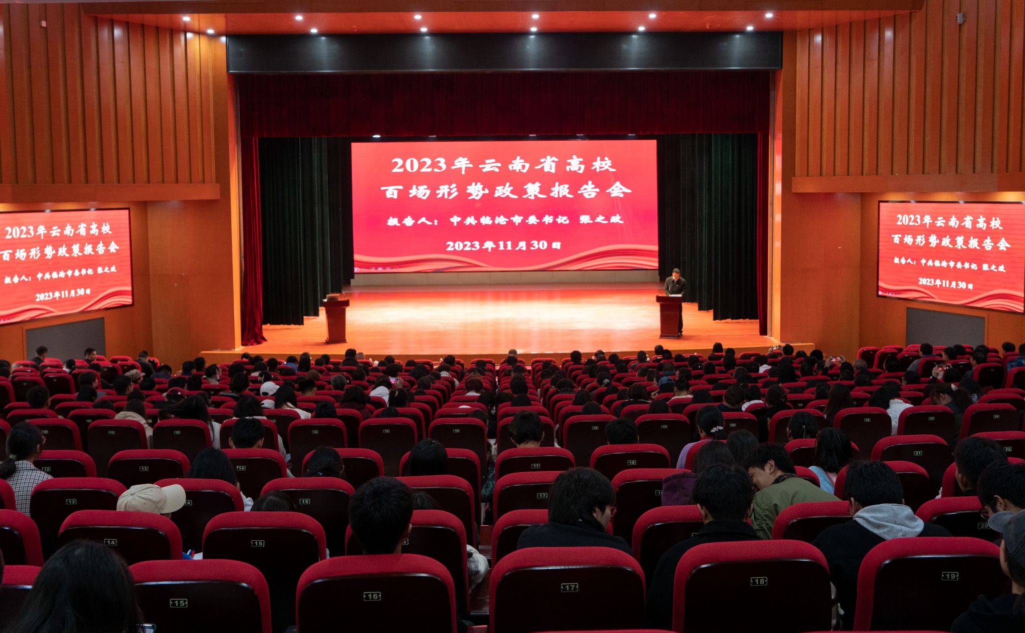 11月30日,临沧市委书记张之政到校调研并作形势政策报告会,校党委书记阮凤斌主持会议并讲话,校党委副书记、校长董大校出席会议。