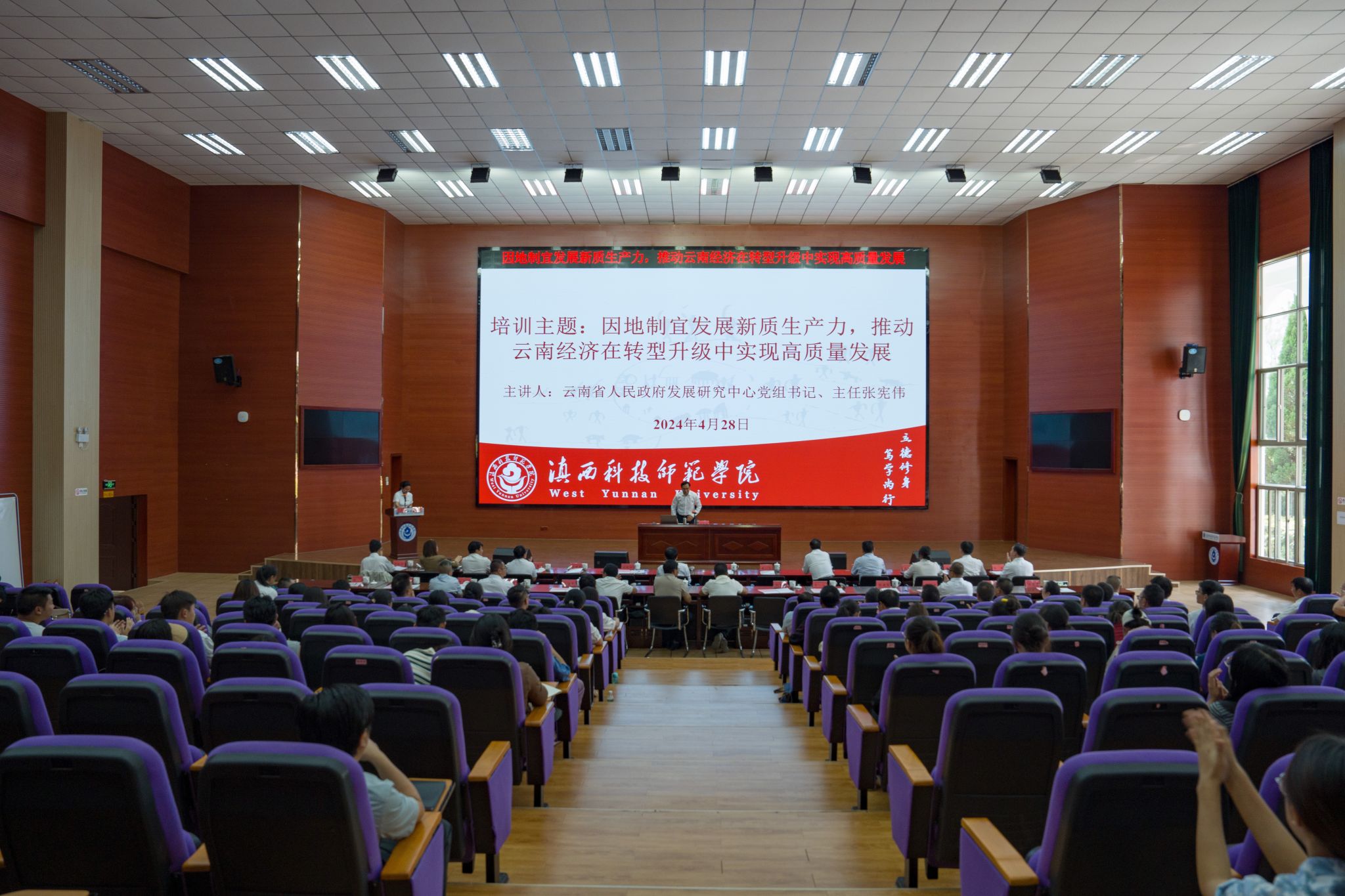 4月28日,云南省人民政府发展研究中心党组书记、主任张宪伟到校开展专题讲座。校党委书记阮凤斌出席讲座,校党委委员、副校长梅英主持讲座。