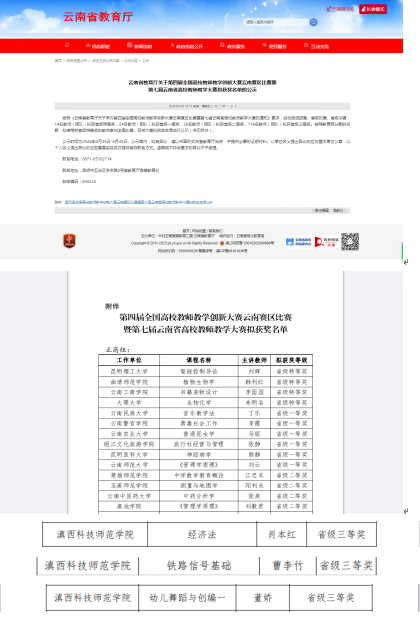近日,第四届全国高校教师教学创新大赛云南赛区比赛暨第七届云南省高校教师教学大赛成绩揭晓,我校曹李竹、董娇、肖本红三位教师带领其团队,凭借其扎实的教学基础和良好的教育素养,荣获省赛三等奖。