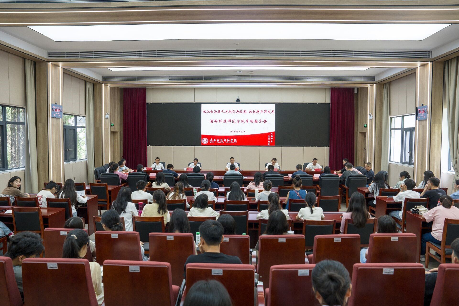 双江自治县人才招引工作组,学校有关职能部门、二级学院主要负责人、带队教师和学生代表参加了推介会。