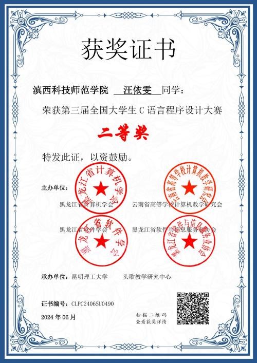 据悉,全国大学生C语言程序设计大赛是由黑龙江省计算机学会、云南省高等学校计算机教学研究会、黑龙江省软件学会、黑龙江省软件与信息服务业协会联合主办,昆明理工大学与头歌教学研究中心共同承办的,今年已是第三届。